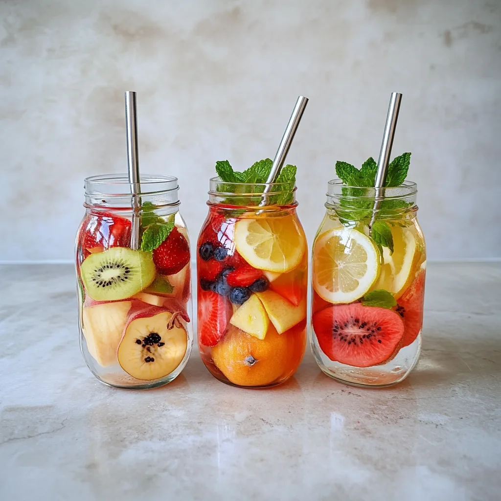 Preparing refreshing fruit infused water recipes is a breeze, making them ideal for meal prep enthusiasts! You can easily slice up the citrus fruits—1 medium lemon, 1 medium lime, and 1 medium orange—and combine them in a pitcher with 8 cups of filtered water. For the berry infusion, just place 1 cup of sliced strawberries and 1 cup of blueberries in another pitcher with 8 cups of filtered water. Lastly, for the herbal infusion, add 1 cup of fresh mint leaves and 1 medium sliced cucumber to a pitcher filled with 8 cups of water. Once you’ve mixed these combinations together, refrigerate each pitcher for at least one hour before serving. These fruit infused water recipes can be prepped up to 24 hours in advance for optimal freshness. To maintain quality, avoid leaving the fruit in the water for more than three days; otherwise, their flavors may become too intense or muddled. When you’re ready to enjoy your refreshing drinks, simply pour over ice and sip away!